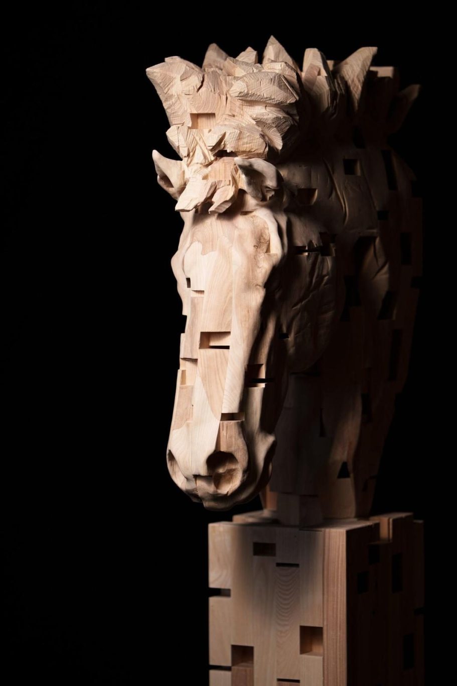 Horse Head, Eschenholz, Höhe 190 x Breite 60 x Tiefe 30 cm, 2025