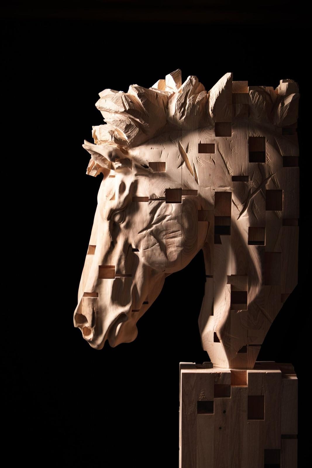 Horse Head, Eschenholz, Höhe 190 x Breite 60 x Tiefe 30 cm, 2025